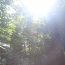 [00:09] Walking through forest looking up with light leaks through trees stock video Full HD 30fps